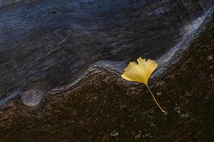 Gingko leaf on tree trunk